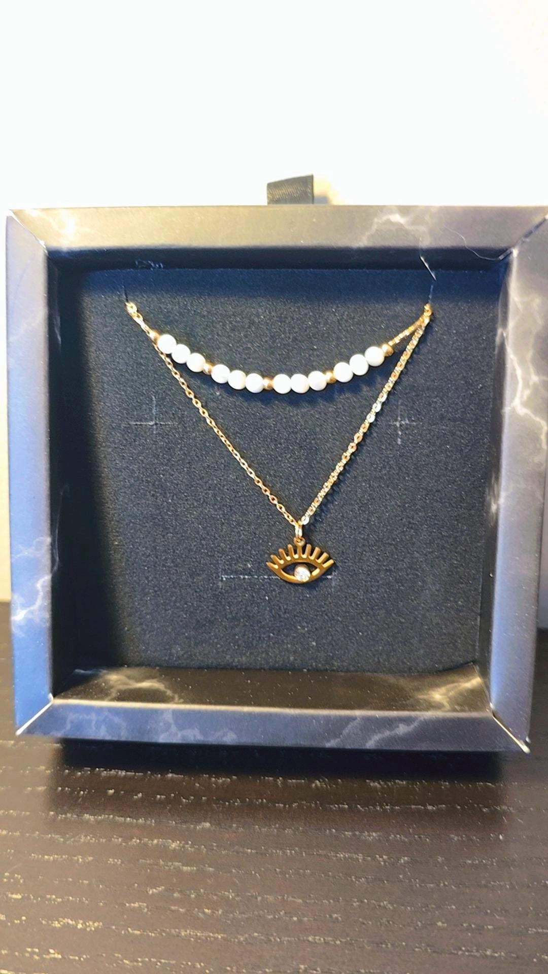 Este colar duplo em aço inoxidável 304 com banho em ouro 18K é resistente, elegante e perfeito para completar qualquer look.